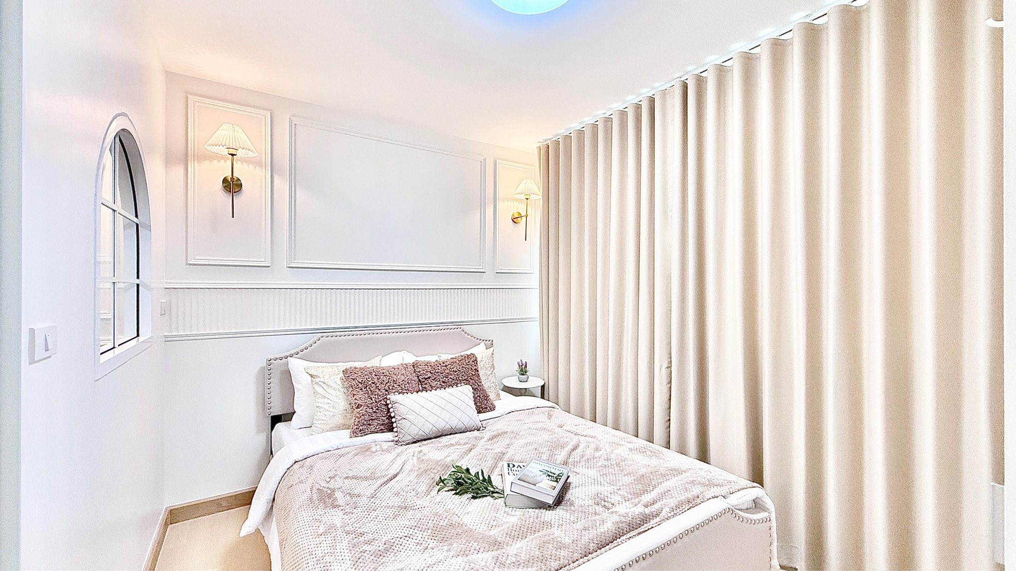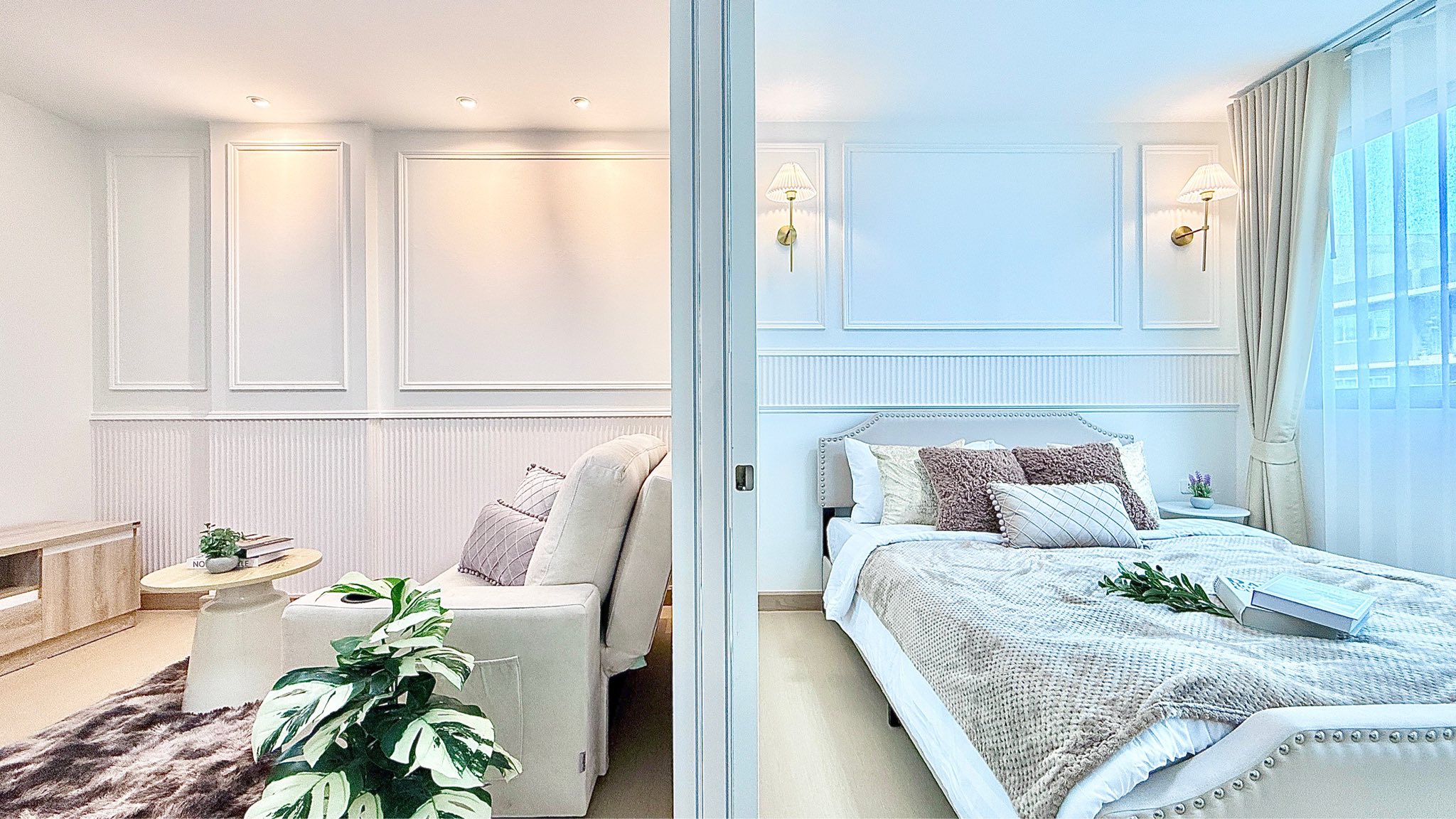 - เฟอร์นิเจอร์ครบ: เตียง, ตู้เสื้อผ้า, โต๊ะ, โซฟา, เคาน์เตอร์ครัว
