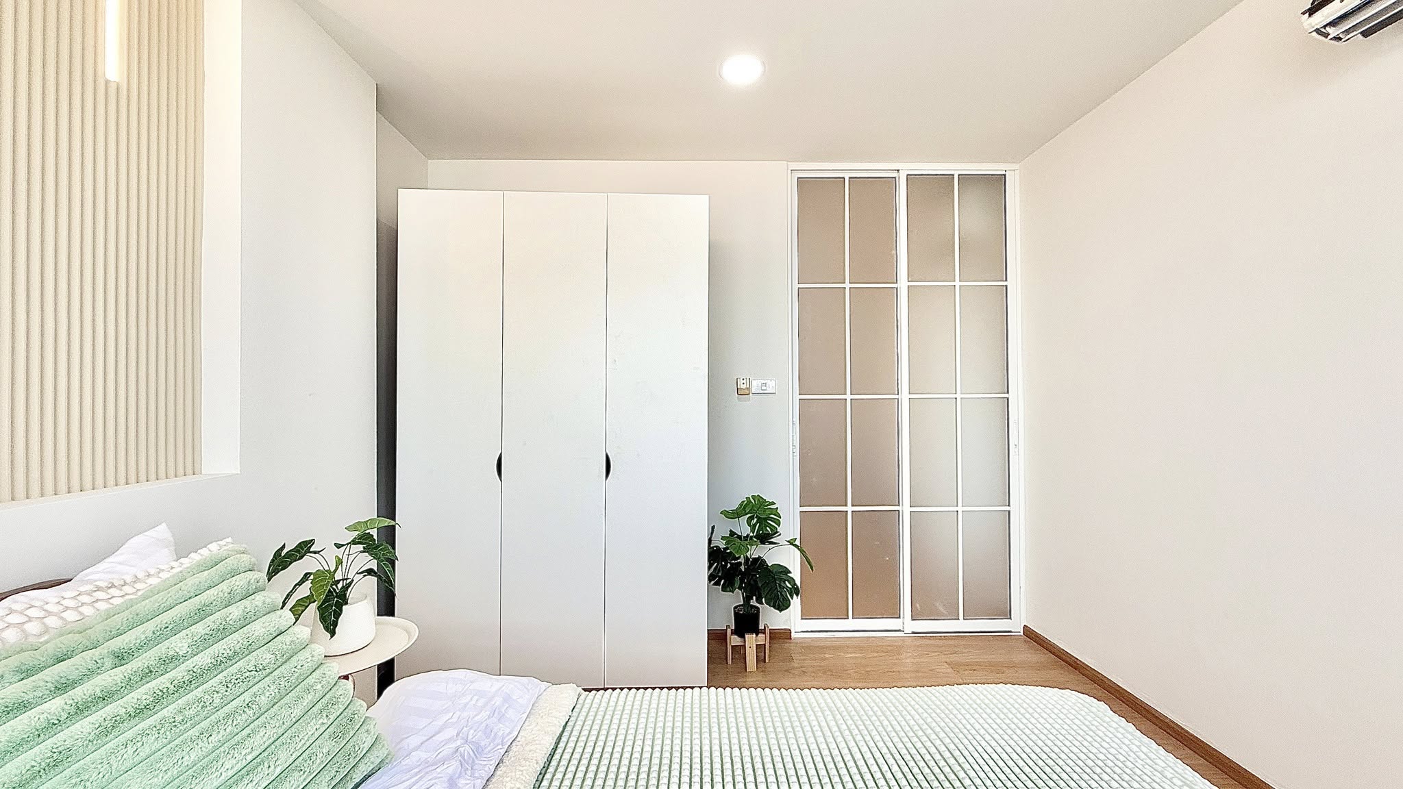 - พื้นห้อง: ปูด้วยวัสดุ SPC กันน้ำ กันปลวก กันไฟ 100%