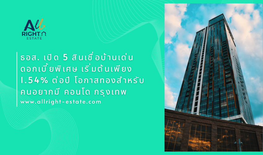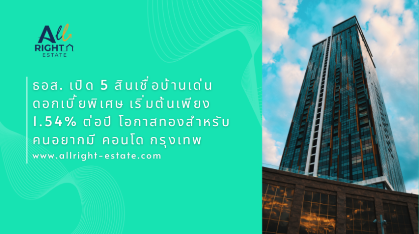 ธอส. เปิด 5 สินเชื่อบ้านเด่น ดอกเบี้ยพิเศษ เริ่มต้นเพียง 1.54% ต่อปี โอกาสทองสำหรับคนอยากมี คอนโด กรุงเทพ